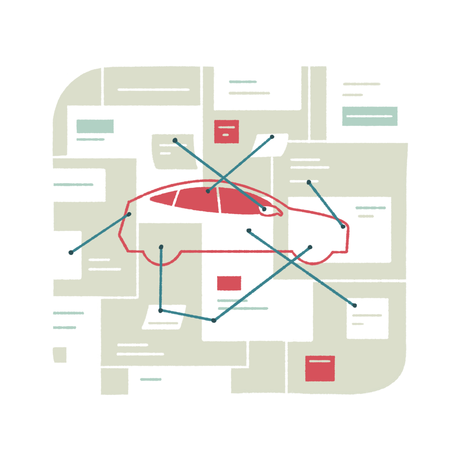 Spot illustrations of how to buy a new car for Crescent School alumni magazine winter 2024 issue.